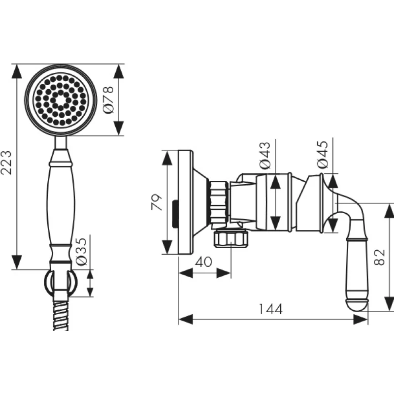 Металлическая розетка, Эксцентрики, Душевой шланг, Душевая лейка, Держатель для душевой лейки