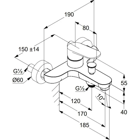 Смеситель для ванны D-Lin D130628 с душевым гарнитуром, хром