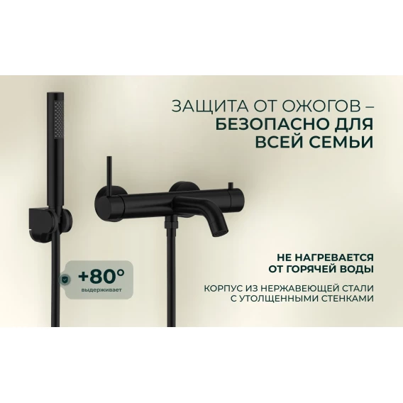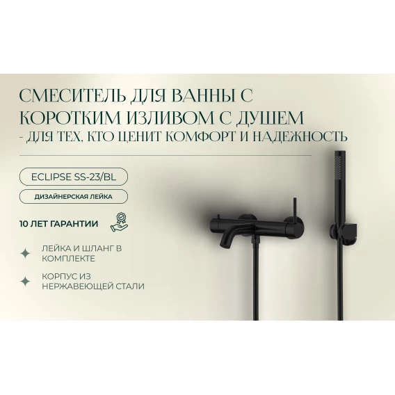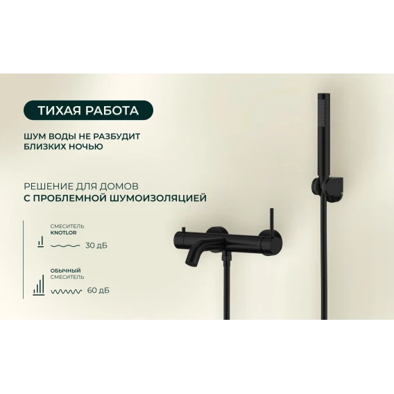Смеситель для ванны Knotlor Eclipse SS-23/BL с душевым гарнитуром, черный матовый
