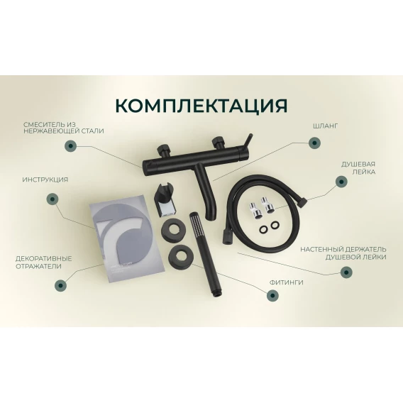 Аэратор, Металлическая розетка, Эксцентрики, Душевой шланг, Душевая лейка, Держатель для душевой лейки