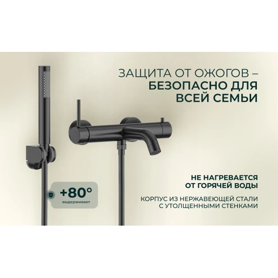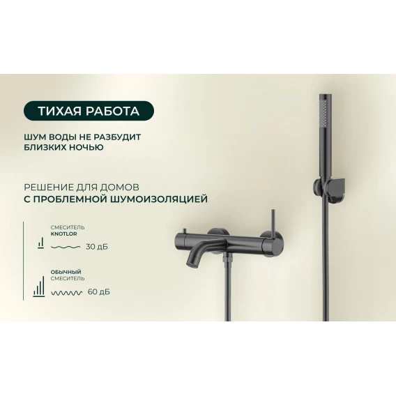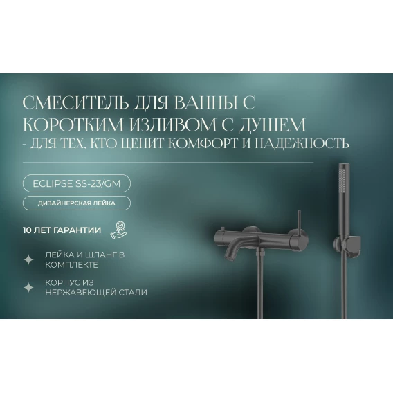 Смеситель для ванны Knotlor Eclipse SS-23/GM с душевым гарнитуром, вороненая сталь