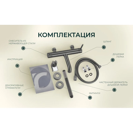 Аэратор, Металлическая розетка, Эксцентрики, Душевой шланг, Душевая лейка, Держатель для душевой лейки