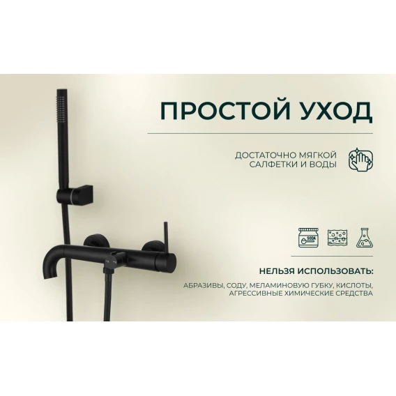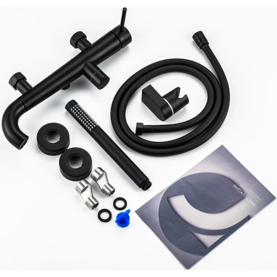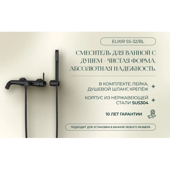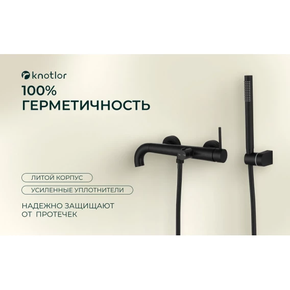Смеситель для ванны Knotlor Elixir SS-32/BL с душевым гарнитуром, черный матовый