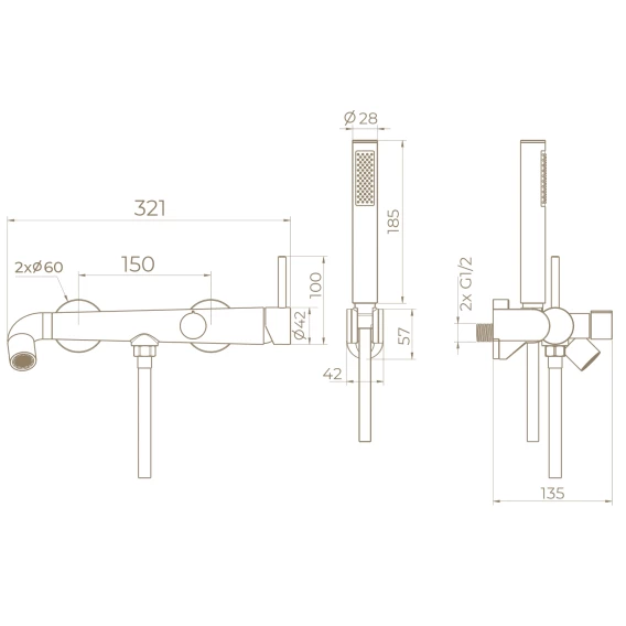 Смеситель для ванны Knotlor Elixir SS-32/RB с душевым гарнитуром, бронза матовая