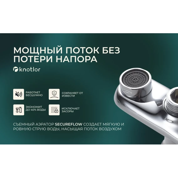 Смеситель для ванны Knotlor Pulse KN-52 с душевым гарнитуром, хром