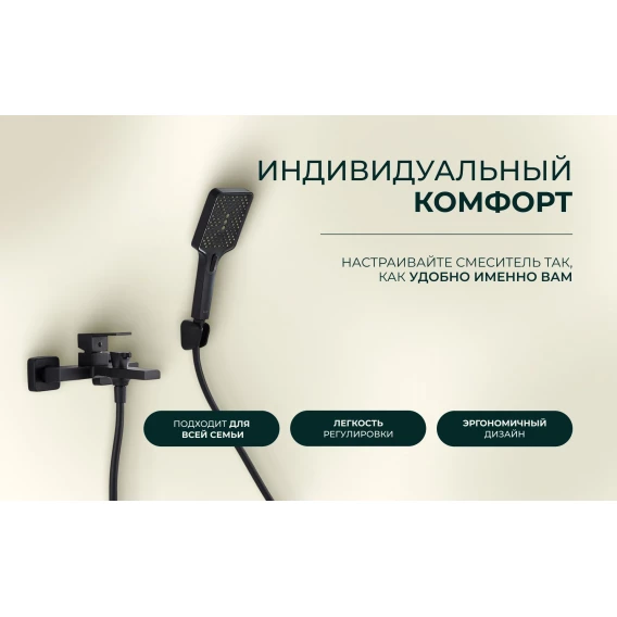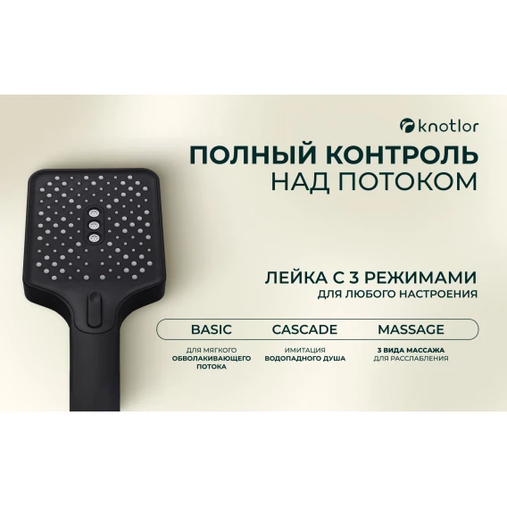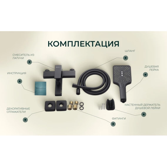 Смеситель для ванны Knotlor Stable KN-22/BL с душевым гарнитуром, черный матовый
