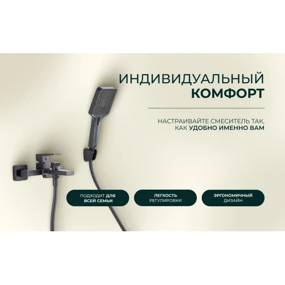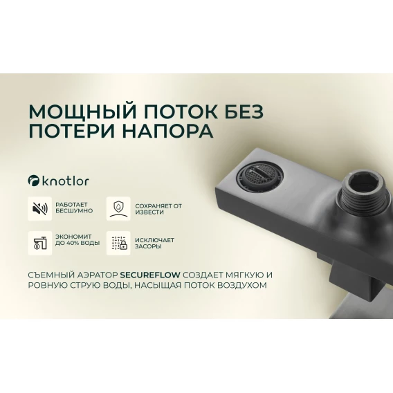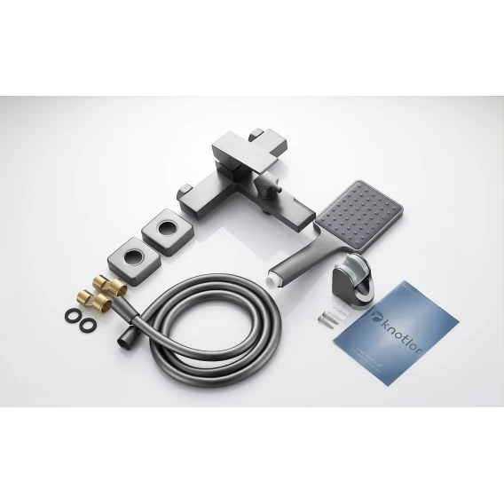 Смеситель для ванны Knotlor Stable KN-22/GM с душевым гарнитуром, вороненая сталь