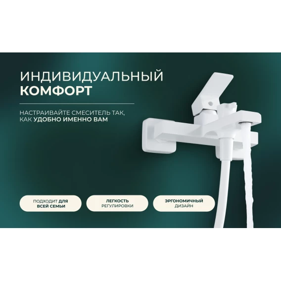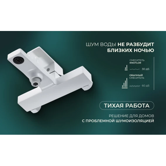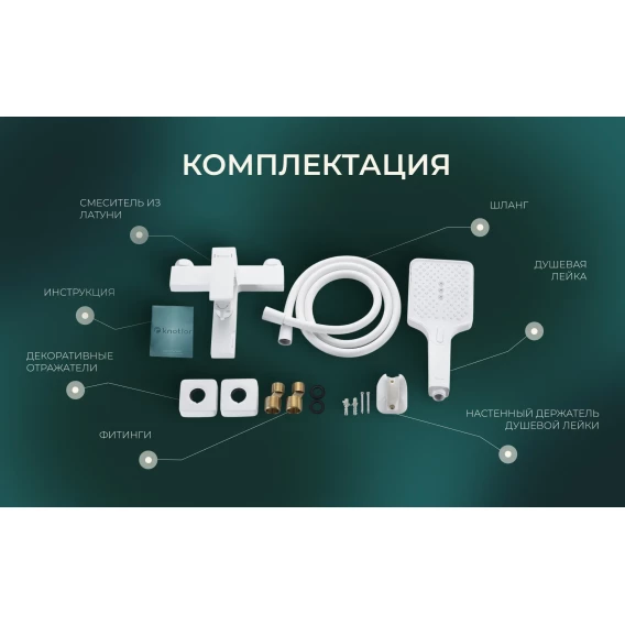 Смеситель для ванны Knotlor Stable KN-22/WY с душевым гарнитуром, белый матовый