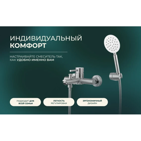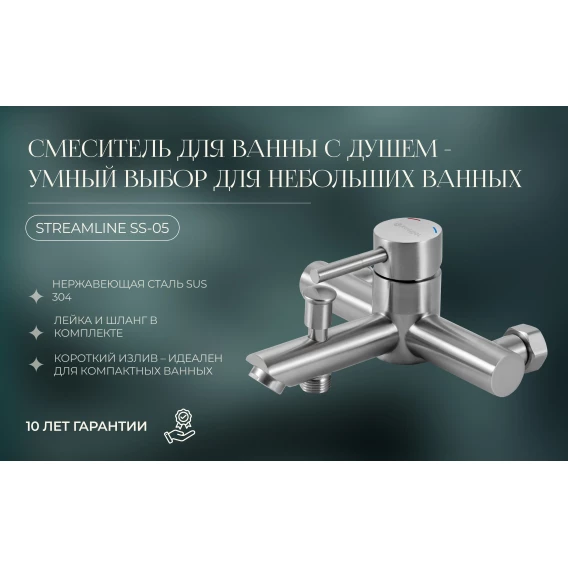 Смеситель для ванны Knotlor Streamline SS-05 с душевым гарнитуром, нержавеющая сталь