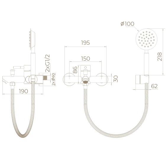 Аэратор, Металлическая розетка, Эксцентрики, Душевой шланг, Душевая лейка, Держатель для душевой лейки