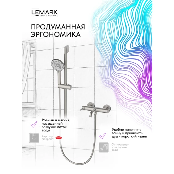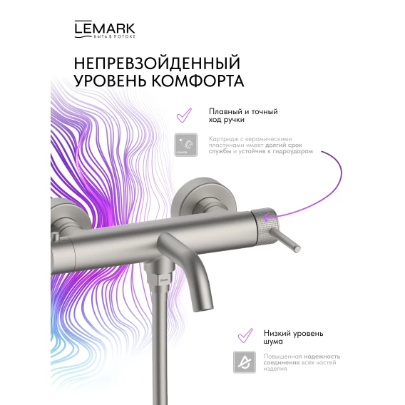 Смеситель для ванны Lemark Beluga LMF-8022B-BN с душевым гарнитуром, никель матовый