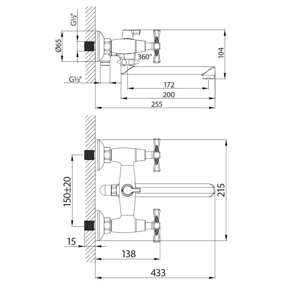 Смеситель для ванны Lemark Flora LM0152C универсальный, с душевым гарнитуром, хром