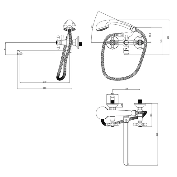 Аэратор, Металлическая розетка, Эксцентрики, Душевой шланг, Душевая лейка, Держатель для душевой лейки