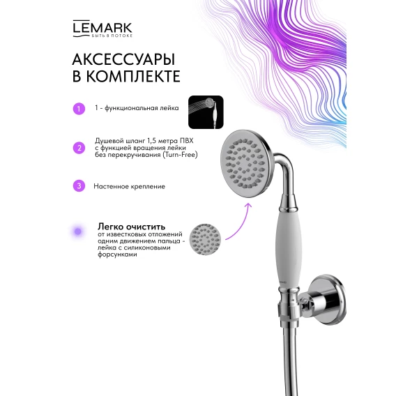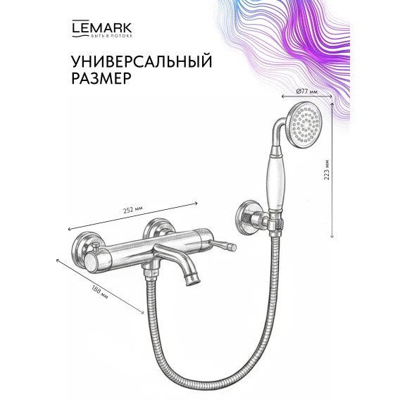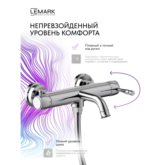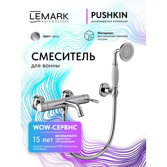 Смеситель для ванны Lemark Pushkin LMF-8622B-C с душевым гарнитуром, хром