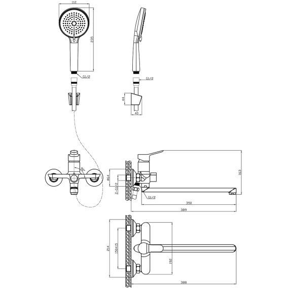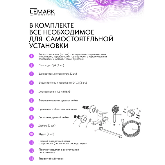 Аэратор, Металлическая розетка, Эксцентрики, Душевой шланг, Душевая лейка, Держатель для душевой лейки