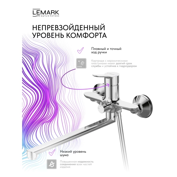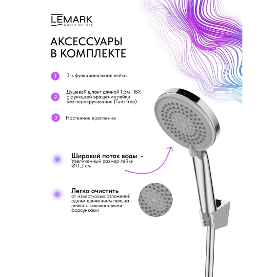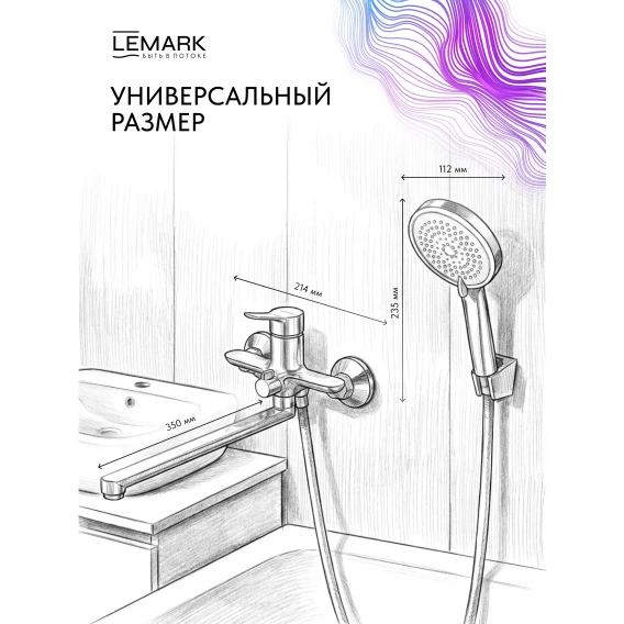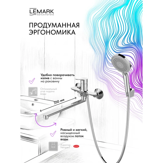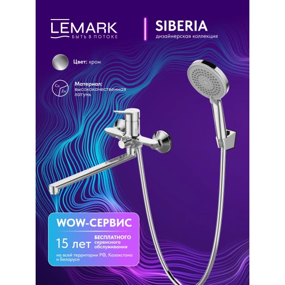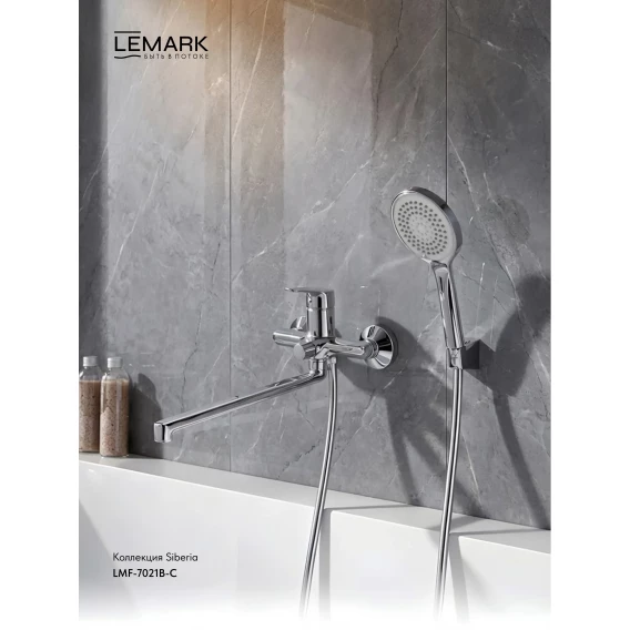 Смеситель для ванны Lemark Siberia LMF-7021B-C универсальный, с душевым гарнитуром, хром
