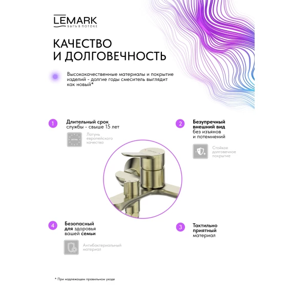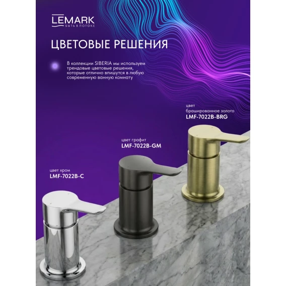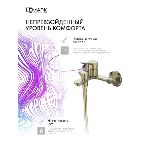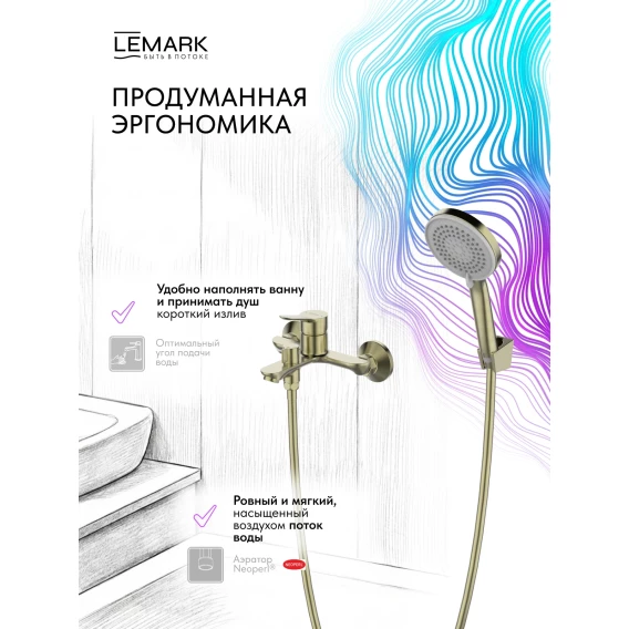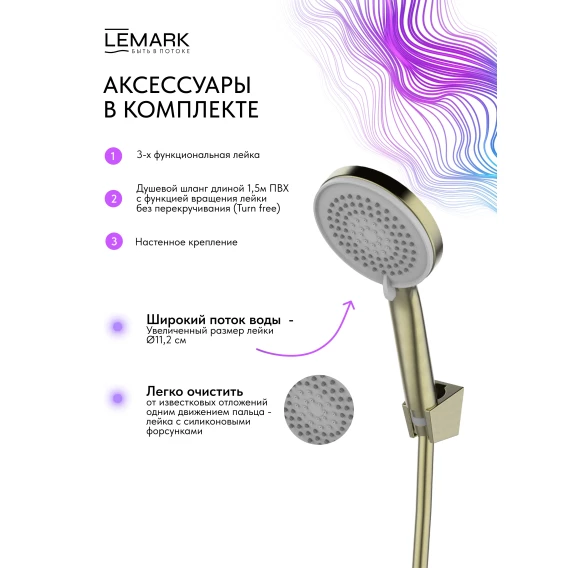 Смеситель для ванны Lemark Siberia LMF-7022B-BRG с душевым гарнитуром, золотой матовый