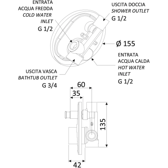Смеситель для ванны Mariani Surf B00173SF00 встраиваемый, хром