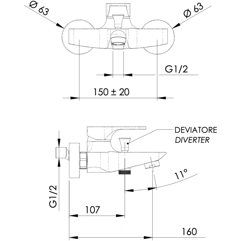 Смеситель для ванны Webert Pegaso PE860101015
