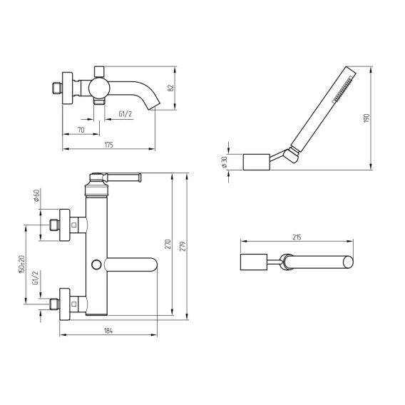 Аэратор, Металлическая розетка, Эксцентрики, Душевой шланг, Душевая лейка, Держатель для душевой лейки