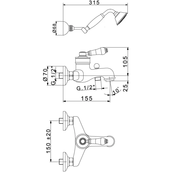Аэратор, Металлическая розетка, Эксцентрики, Душевой шланг, Душевая лейка, Держатель для душевой лейки