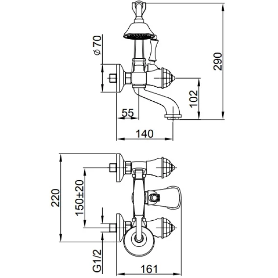 Смеситель для ванны Emmevi Tiffany 6001/NC хром/черный