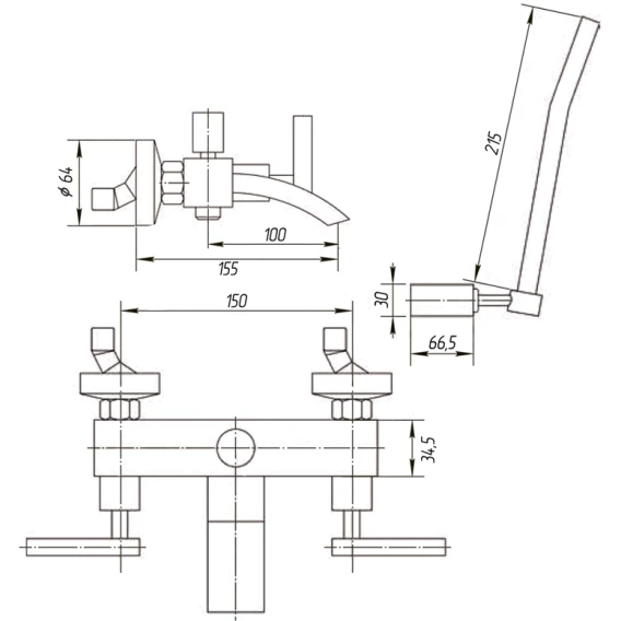 Металлическая розетка, Эксцентрики, Душевой шланг, Душевая лейка, Держатель для душевой лейки