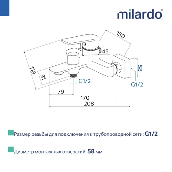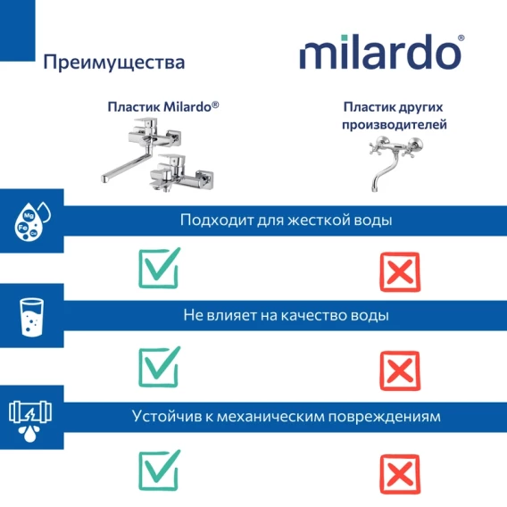 Смеситель для ванны Milardo Poli POLSB00M02 с душевым гарнитуром, хром