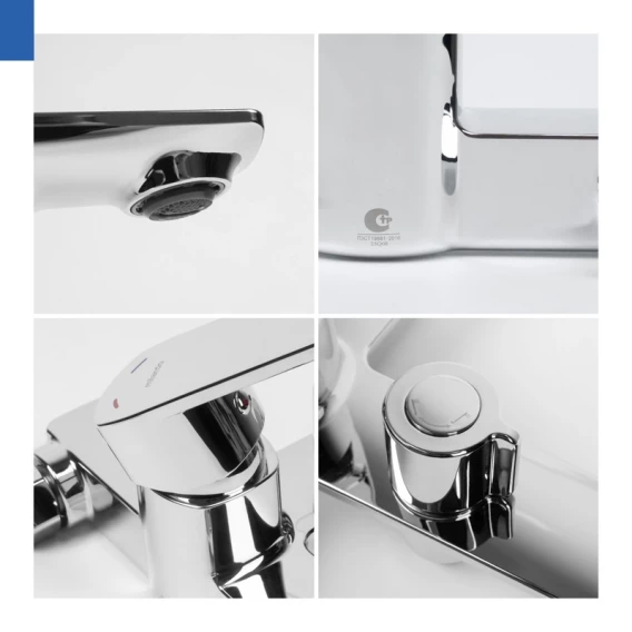 Аэратор, Металлическая розетка, Эксцентрики, Душевой шланг, Душевая лейка, Держатель для душевой лейки