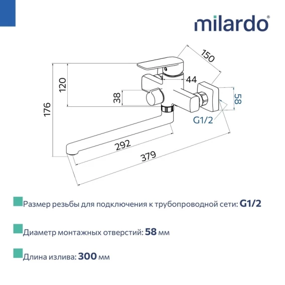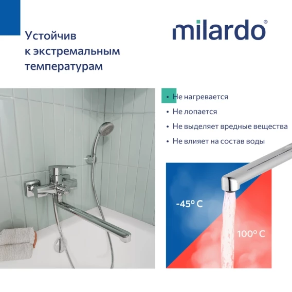 Смеситель для ванны Milardo Poli POLSB00M10 универсальный, с душевым гарнитуром, хром
