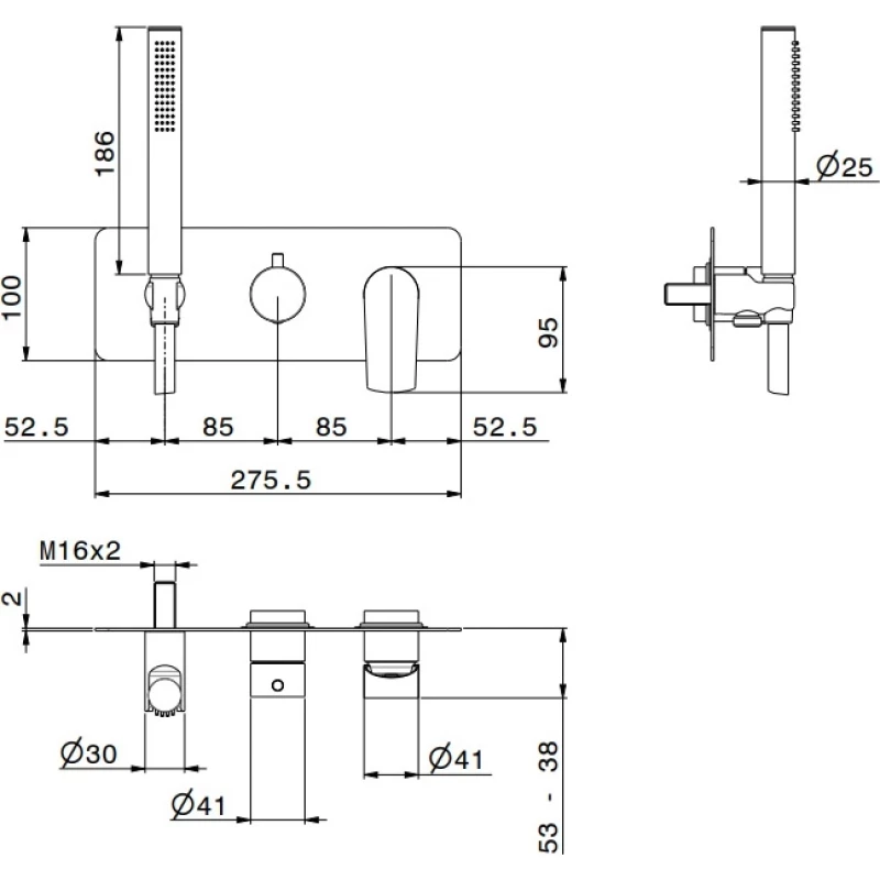 Душевой шланг, Душевая лейка, Подключение для душевого шланга с держателем