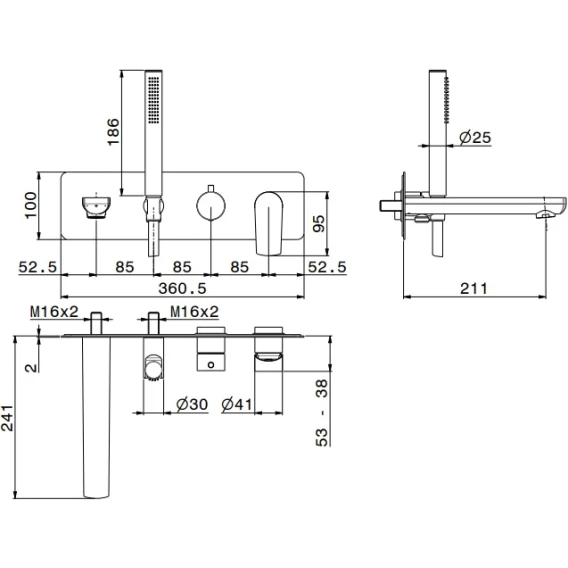 Аэратор, Душевой шланг, Душевая лейка, Подключение для душевого шланга с держателем, Излив