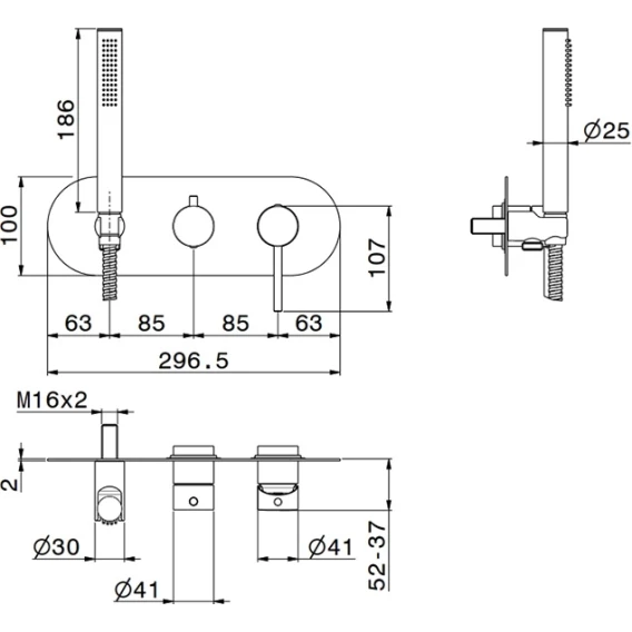 Душевой шланг, Душевая лейка, Подключение для душевого шланга с держателем