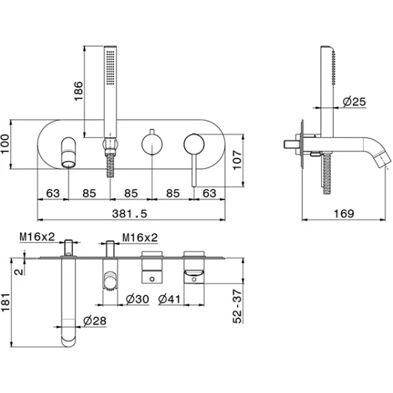Аэратор, Душевой шланг, Душевая лейка, Подключение для душевого шланга с держателем, Излив