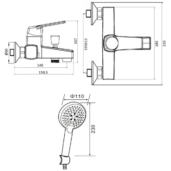 Аэратор, Металлическая розетка, Эксцентрики, Душевой шланг, Душевая лейка, Держатель для душевой лейки