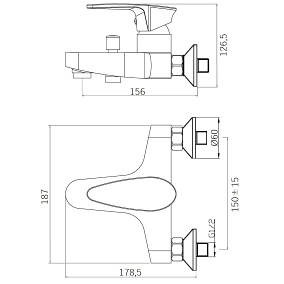 Длина излива 15.6 см