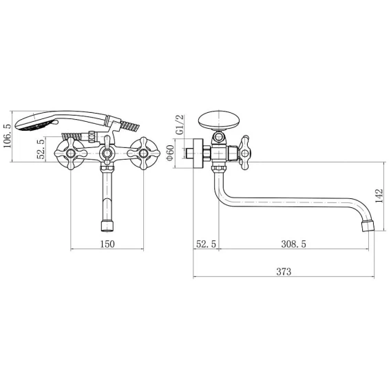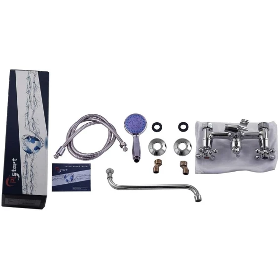 Аэратор, Металлическая розетка, Эксцентрики, Душевой шланг, Душевая лейка, Держатель для душевой лейки