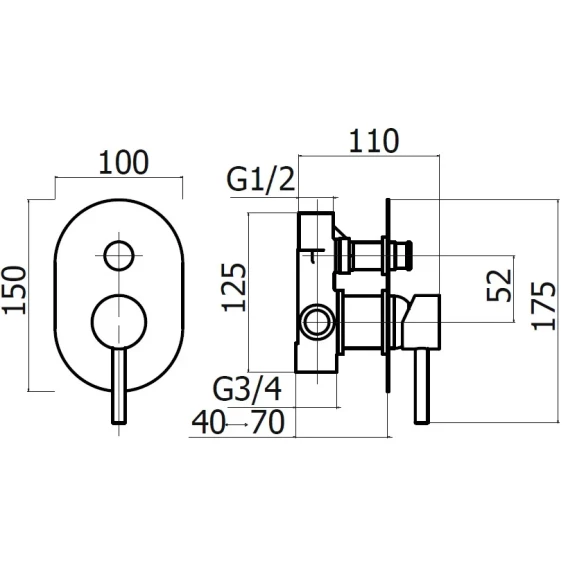 Смеситель для ванны Plumberia Selection IXO KIT1001CS встраиваемый, матовый хром