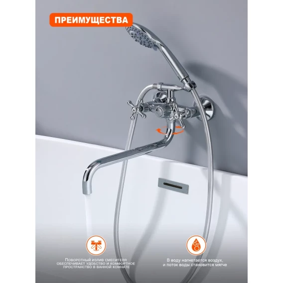 Аэратор, Металлическая розетка, Эксцентрики, Душевой шланг, Душевая лейка, Держатель для душевой лейки