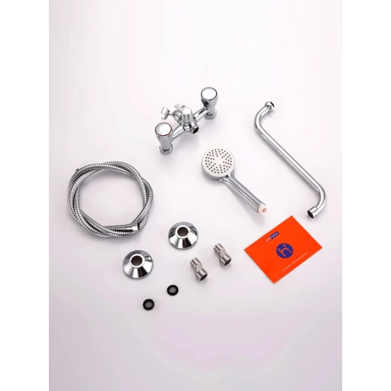 Аэратор, Металлическая розетка, Эксцентрики, Душевой шланг, Душевая лейка, Держатель для душевой лейки