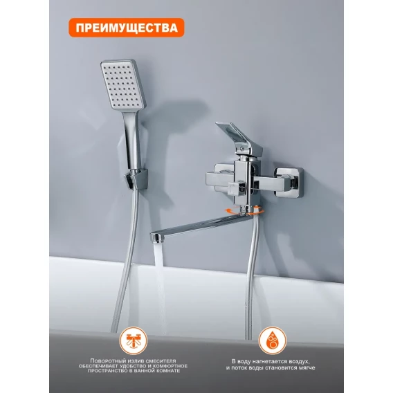 Аэратор, Металлическая розетка, Эксцентрики, Душевой шланг, Душевая лейка, Держатель для душевой лейки
