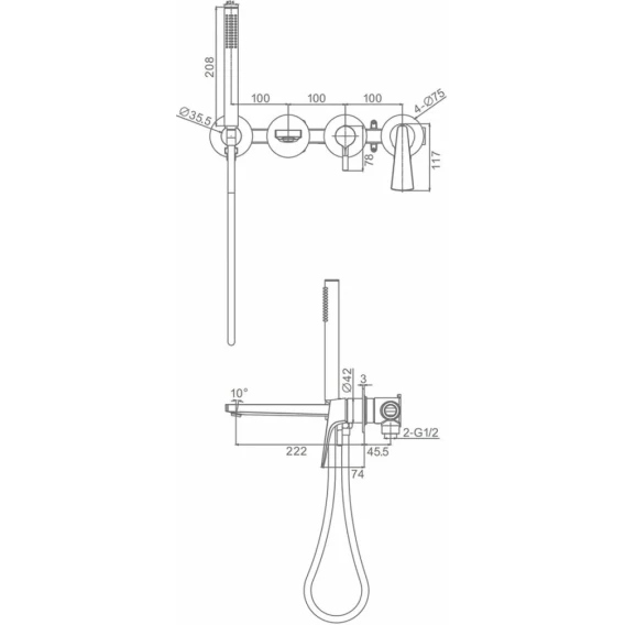 Аэратор, Душевой шланг, Душевая лейка, Подключение для душевого шланга с держателем, Излив, Скрытая монтажная часть