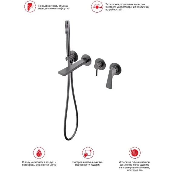 Аэратор, Душевой шланг, Душевая лейка, Подключение для душевого шланга с держателем, Излив, Скрытая монтажная часть