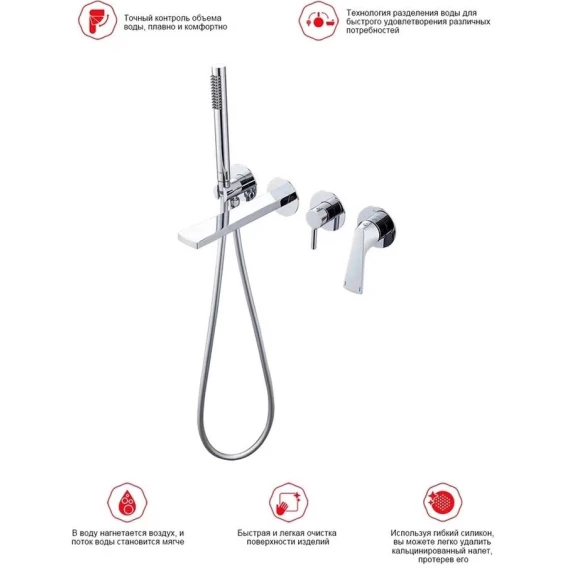 Аэратор, Душевой шланг, Душевая лейка, Подключение для душевого шланга с держателем, Излив, Скрытая монтажная часть