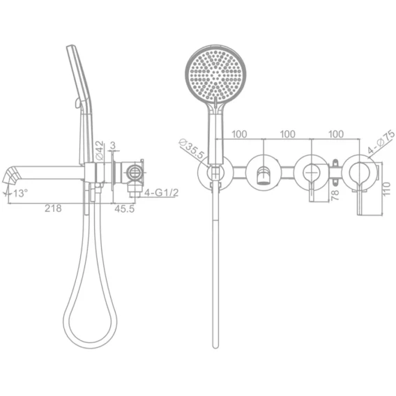 Аэратор, Душевой шланг, Душевая лейка, Подключение для душевого шланга с держателем, Излив, Скрытая монтажная часть