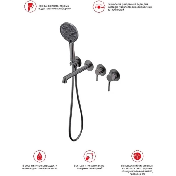 Аэратор, Душевой шланг, Душевая лейка, Подключение для душевого шланга с держателем, Излив, Скрытая монтажная часть