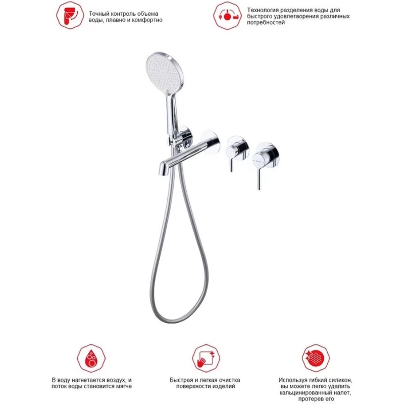 Смеситель для ванны Raglo R20.32 встраиваемый, с душевым гарнитуром, хром