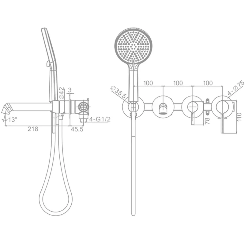 Аэратор, Душевой шланг, Душевая лейка, Подключение для душевого шланга с держателем, Излив, Скрытая монтажная часть