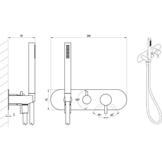 Душевой шланг, Душевая лейка, Подключение для душевого шланга с держателем