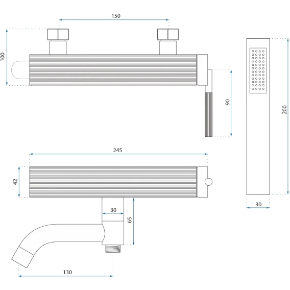 Аэратор, Металлическая розетка, Эксцентрики, Душевой шланг, Душевая лейка, Держатель для душевой лейки